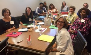 PIQ meeting, Summer 2017. Clockwise from bottom left: M. Kimbrell (AnMed Health), T. Lewis (American Cancer Society), S. Younger (DHEC), K. McDonnell (USC), H. Well (SC Cancer Alliance), D. Seale (Palmetto Health -ret), A. Grant (Brookland Baptist Church); D. Bowers (Palmetto Health)